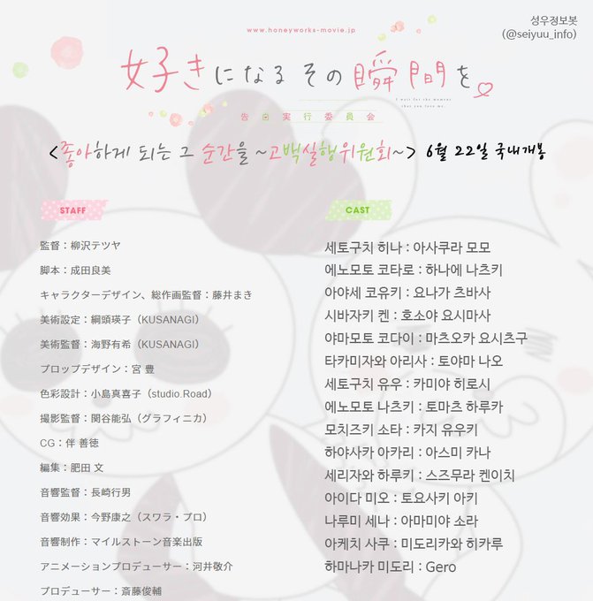 극장판 <좋아하게 되는 그 순간을. ~고백실행위원회~> 6월 22일 국내개봉