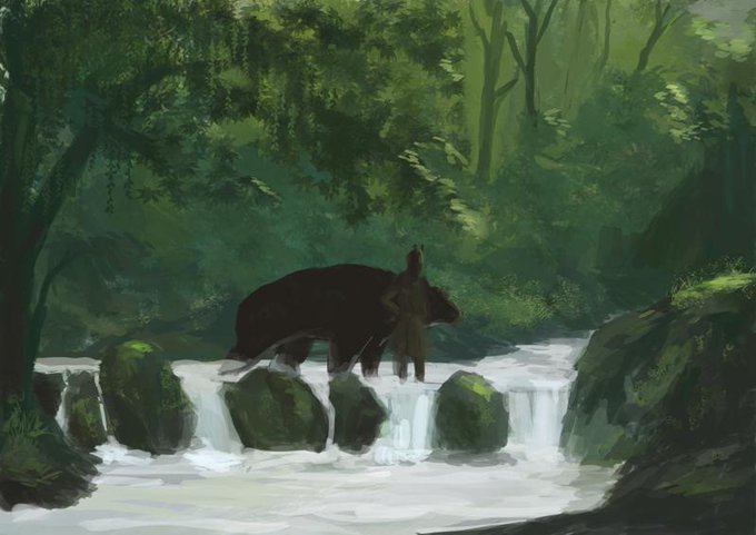 雁は森にすんでいて熊のおばさん(と勝手に読んでいる)と仲がいい
