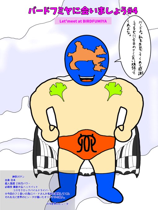 今回のバードフミヤの狼牙生配信!でのキン肉マン超人扉絵はバードさんが名前を提案してくれてそれを自分なりに考え作ったオリジナル超人「プラズマクラスターマン」をチョイスしました(^o^)/バードフミヤさん明日のフミ会い頑張ってくださいᕦ(ò_óˇ)ᕤ