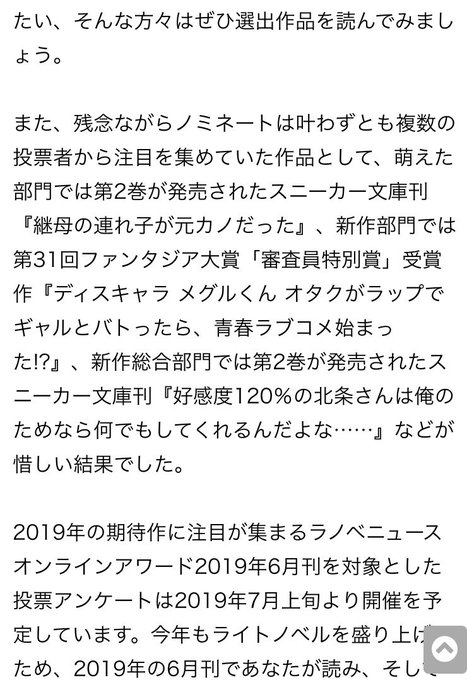 惜しくもノミネートとはなりませんでしたがラノベニュースオンラインアワード5月刊「好感度120%の北条さんは俺のためなら何でもしてくれるんだよな……2」に投票して下さった皆様ありがとうございました!