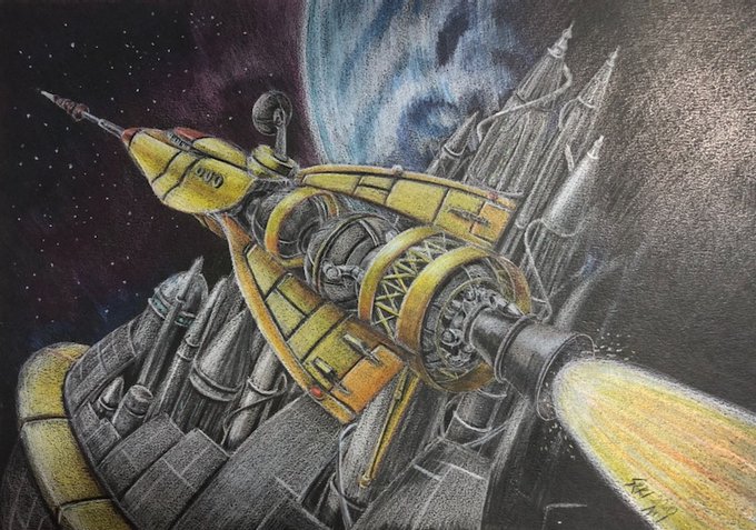 #TLに深刻な架空戦闘機不足 #scifi #色鉛筆画 オリジナルな落書きです