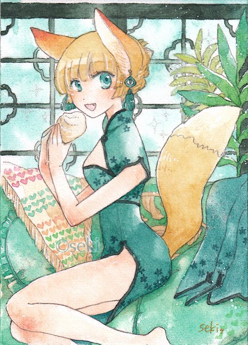 COLORs2022に出展中のATC、みどりのきつねちゃん🦊中華風女子ズです。