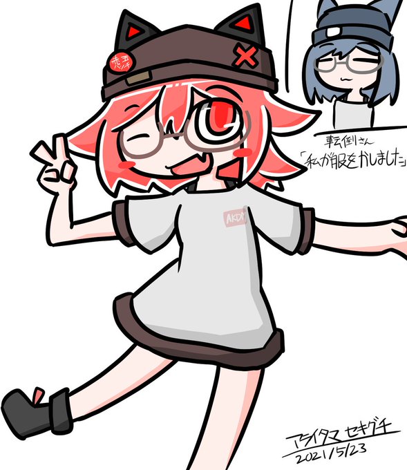 転倒注意さん(@ineversleep9)の着ている服をお借りしてウチの赤玉ミントちゃんを描きました! お借りさせていただきありがとうございます! #VRC衣装交換会