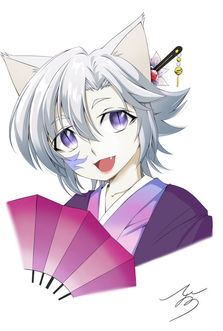 [再掲] 「お返しなんてそんな…あ、ありがとうございます…」 #妖狐五人娘 #ホワイトデー #ホワイトデーは銀髪白髪を愛でる日 #ホワイトデーイラスト