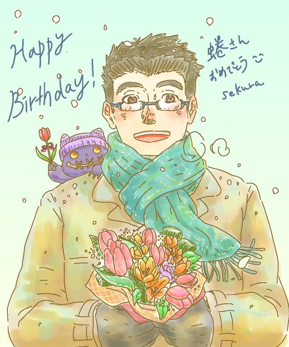 改めまして、蜷さんお誕生日おめでとうございます!リプ欄でもお邪魔しましたが、やはりイラストでお祝いしたかったので!2度目失礼しました!