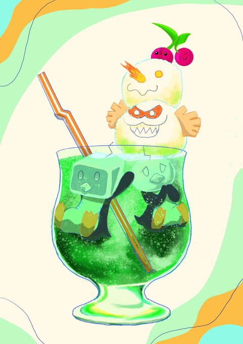 本日はとても暑かったちぃね カランコロンゾクゾクひんやりラムネクリームソーダのよ #ポケモン #ポケモンイラスト