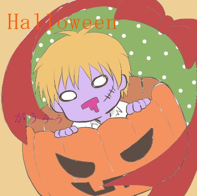 ハロウィンなので急いで描いてみた落書き。アキラくんゾンビ。 すこぶる顔色が悪いのはコスプレだからかなぁ↗?