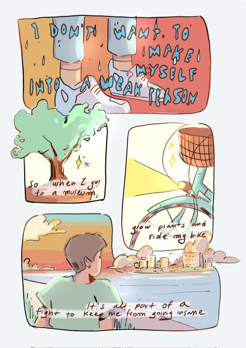 "I dont want to make myself into a weak person, nor let fear consume me and swallow me whole. So when I go to a museum, grow plants, and ride my bike, it's all part of a fight to keep myself from going insane."