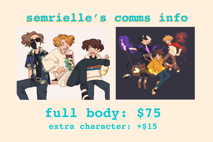 hi just dropping an updated commission sheet! please read my comms carrd for more information ↳ https://t.co/mic22wqBlR ↲ if you're interested, feel free to ask if i'm open in commissions or if you want more specific details!
