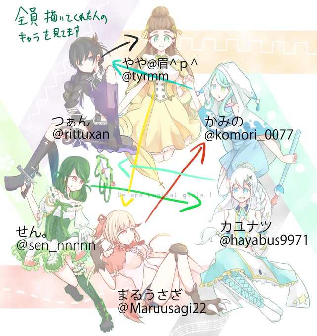 誰のキャラデザだゲームの魔法少女達をやっと全員描き終わりましたああああああ!! みんな可愛いです!ありがとうございました!