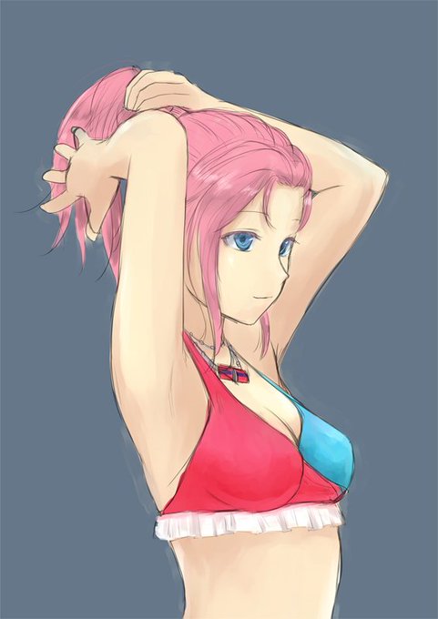 新しいブラシでモニカ水着を試し書き。 しかしこの髪型、どうなってんだ? #スクスト