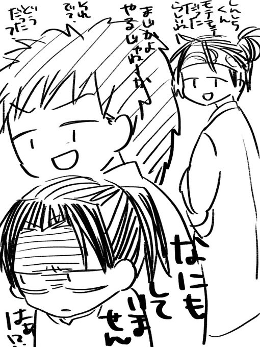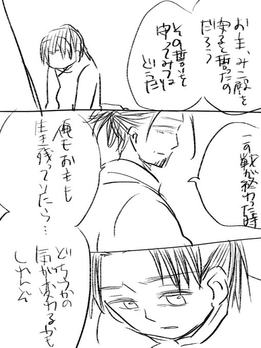 ここ暫く600×800だったので久しぶりに500×500にしたらあまりの小ささにびっくりした。 「弥九郎殿!こちらに来るとふうゆ殿が潰れます!」 「弥九郎殿、惣兵衛様に負担がかかるからこちらに寄らないで下さい」 「おめーらうるせーぞ!大将どうにかしろ!」 「(喜平次はやく助けにこないかな…)」
