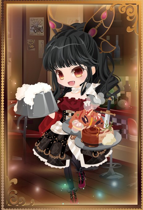 ある程度コーデした所でぼーっとしてたら顔に影が掛かってて「そういやこの髪型こんな可動だったな……」と懐かしさと楽しさで遊んだコーデと差分 乗算でやや茶色よりの黒?が掛かってるせいか若干目の色が変わって面白いです(´ ˘ `∗)