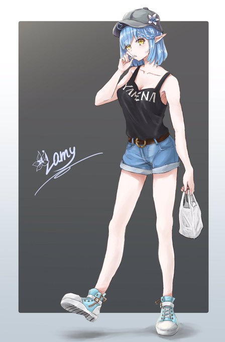 ストリート系ファッションのラミィちゃん(ボブver) 出来たぁ!!! ※くわえてるのは飴です #LamyArt