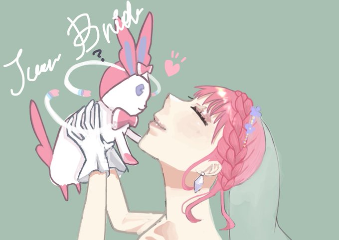 ジューンブライド 『ニンフィアちゃんが居れば寂しくないの🥲』 時間なくて厚塗りで誤魔化したのは🤫🤫 #ライン地方ジムリーダー