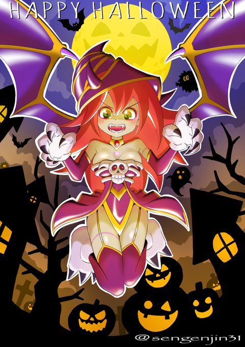 過去ハロウィンの時期に描いたガールたん2枚と、ちまちま描き中のラフ🎃