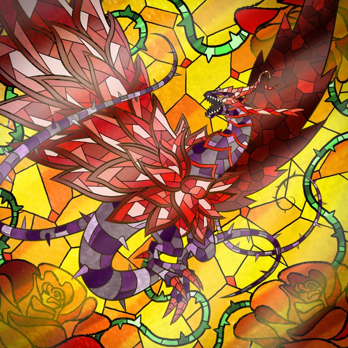 琥鷲ー鵡髑髏さん@kurotan1629 からご依頼いただいたアイコン用ステンドグラスアートのブラックローズドラゴンを今もてる力でリメイクしてみました🎃🌹