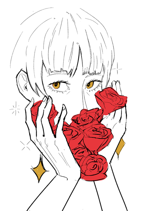 golden eyes and red roses