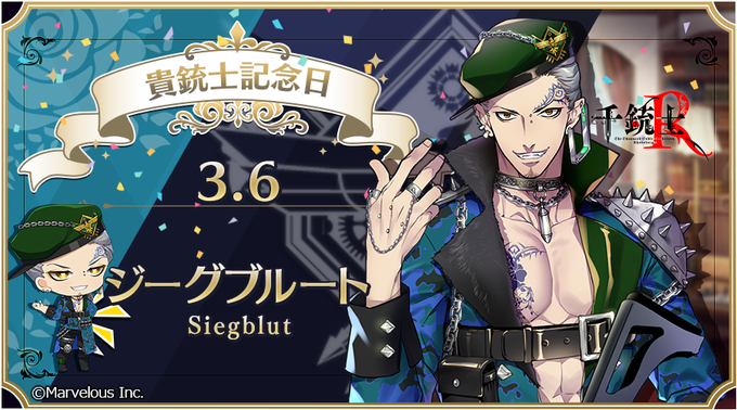 本日貴銃士の #ジーグブルート (CV. #笠間淳 さん)が記念日を迎えました🎵