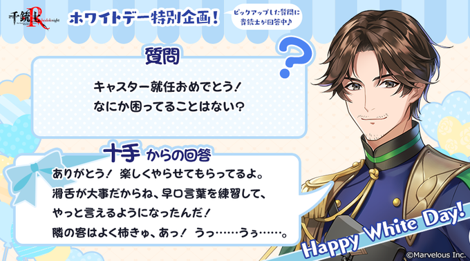 マスターから事前に募集した質問に貴銃士がお答えします💭詳しくは画像をご覧ください🙌
