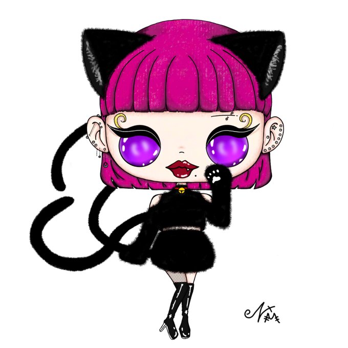 もうすぐ #ハロウィン なので 昔描いた黒猫ちゃんを リメイク、 どっちも好き💕 サインも変わってるや #イラスト #黒猫 #仮装