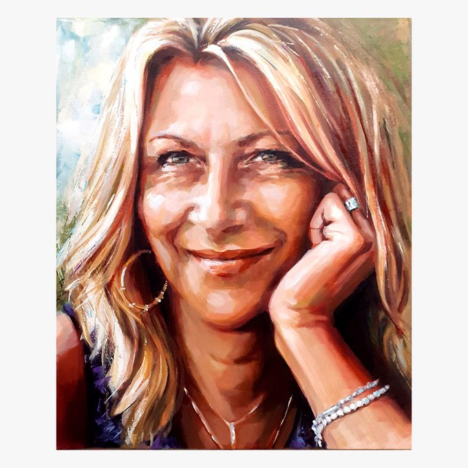 A recent portrait commission arranged as a surprise for Christmas. Oil on canvas 60 x 50 cm 2021. A very attractive subject both inside and out.