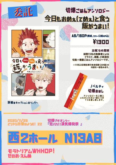 【恋バカ!!】お品書き【出番22】 | せのお #pixiv https://t.co/cYGqPgnn6Y 11月29日 出番22・恋バカ‼︎ お品書きを投稿しました!切爆ごはんアンソロジーの委託もさせていただく予定です!どうぞよろしくお願いいたします!
