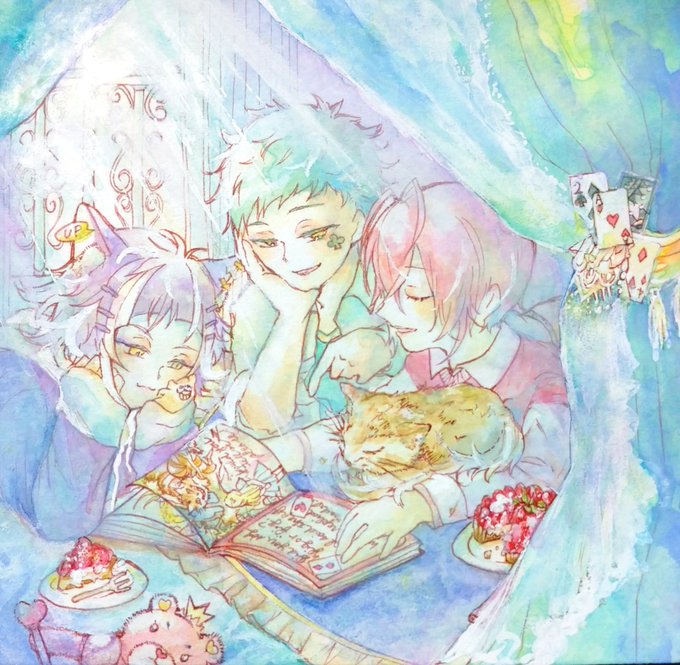 透明水彩や色鉛筆で美少年中心に