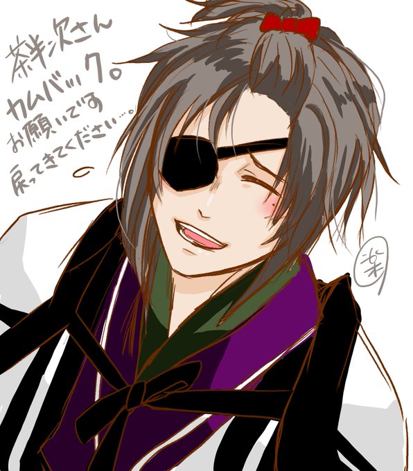 茶半次さん。 「眼帯の奥はそのうち見慣れるさ」 なんかそんなセリフがあった気がしてザクザクーっと描いた。 早く戻っておいで。
