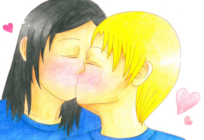 調子に乗ってもう一発キス絵!😘❤️💜 #キスの日