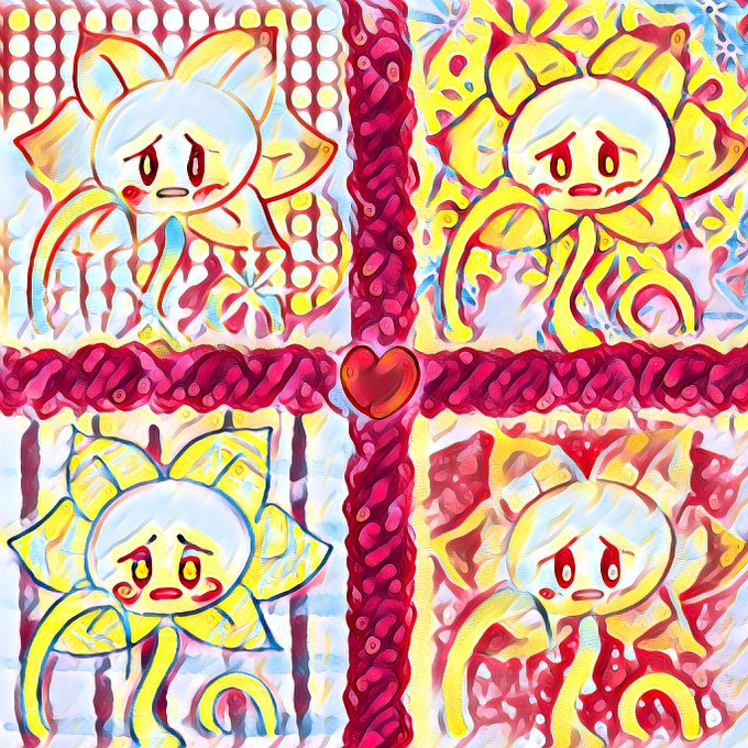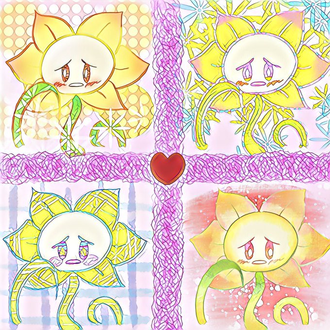 しょんぼり顔のフラウィちゃん可愛いので、色んな塗りをしてみました〜!個人的には右下がお気に入り♪