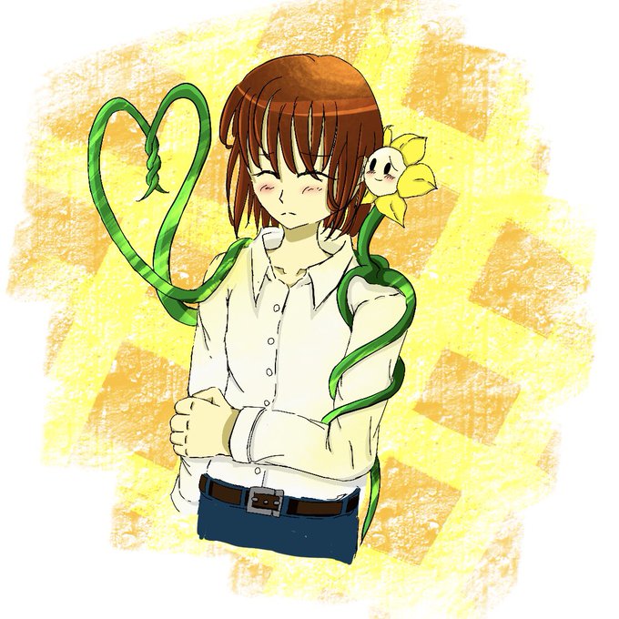 フラウィ×ボーイリッシュ成人フリスク♀のフラフリ描きましたー!(何気に初フラフリ)