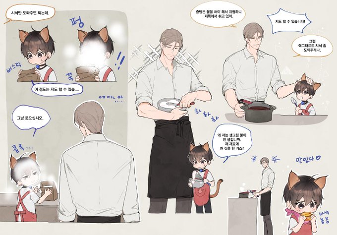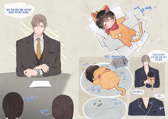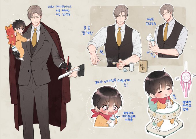 리퀘박스의 애기 유진이 안고 서류 처리하는 세성 길드장님 ☺️💛