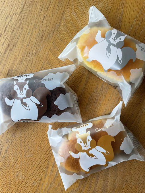 本日の教室お菓子はファクトリーShin「ふわふわスフレ」。じっくり湯煎焼きでふんわり食感。 フロマージュ、ショコラ、キャラメルの3味。パッケージイラストが可愛い♪