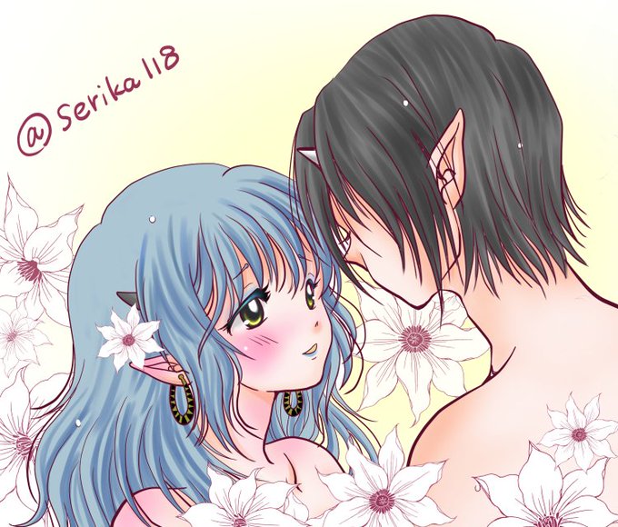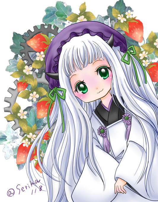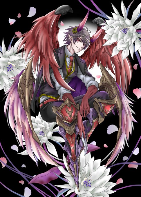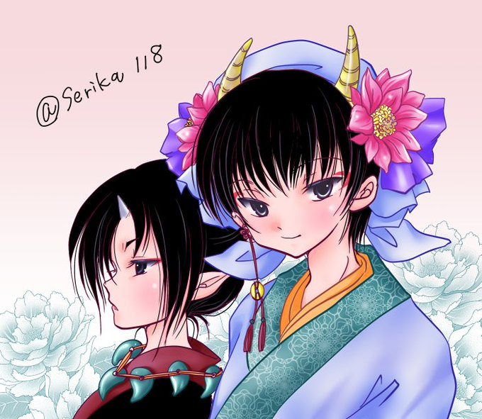 #鬼香の部屋 フリーテーマでもう1枚描かせて頂きました。 鬼灯さまが花びらをくわえているんですが…塗り方が悪くて 舌を出してるように見えますね;;