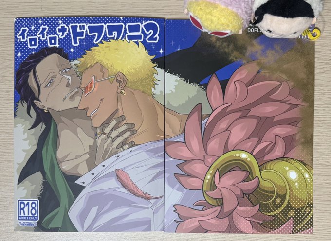 ドフ鰐 新刊の自宅分届いた🦩🐊 裏表並べるとこうなります