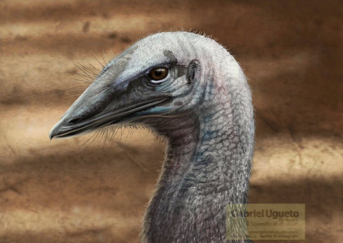 Portraits of long gone big birbs. Aepyornis maximus (Giant Elephant Bird) left; Dinornis robustus (South Island Giant Moa) right.