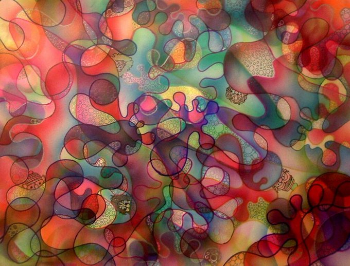 baffling bubbles of digital abstraction, mixed media abstract with digital effects