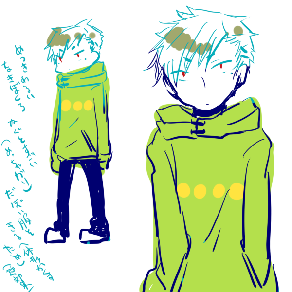 @PWI_dolTL キャラシ投稿したあとだからいいかな…壱汰さんの初期はこんなかんじでした ピン留めがいたし眼もめっちゃ赤かったんだ けど 全部描いてから某パーカーのあの子と雰囲気似てるかもって思って…ね…好きな要素詰めただけだった