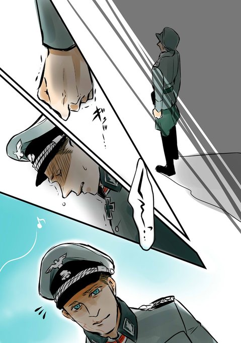 イェーガー大尉を助けに行ったつもりが 逆に助けられてしまって トゥンクしてしまうヴォルフを描いたら 今まで描いた中で一番公式に近かくなったww