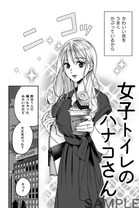 明日6/6(日)コミティア136新刊サンプルです(1)。メイクがすごく上手い女とすごくヘタな女、2人のハナコが女子トイレ繰り広げるほんのり百合なコメディ漫画です。通販も予定しています。