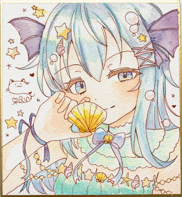 タグ企画 #一次創作絵師拡散フェス03 に参加します 透明水彩で描いた作品です! イラストマーカーで描いた色紙もあります~! boothにて販売中です🌸