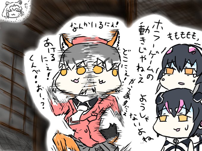 ペンギンに精神のクールダウンタイムを与えないスタイル・・三人ともお疲れ様ですのね楽しかったのね #シマハイイロギツネちゃんねる #けもV三獣士