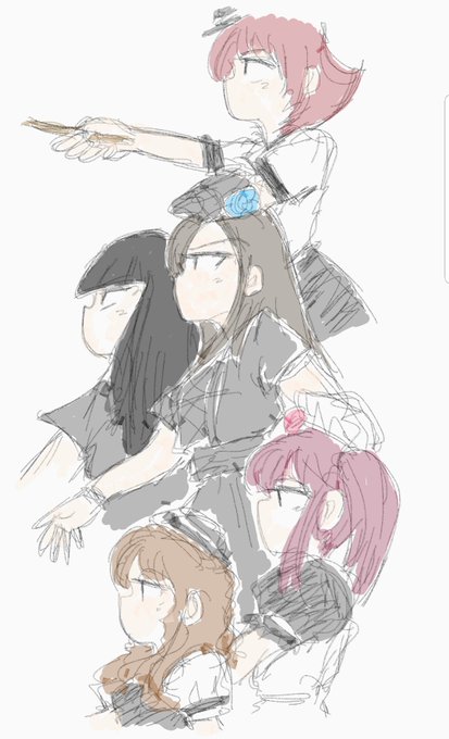 描き慣れてるのもあるけど、未だにBAND-MAIDを描く時は前の衣装。せめてツアーが始まるまではもうしばらくこれでw #bandmaid #小鳩ミク #SAIKI #KANAMI #MISA #AKANE #落書き