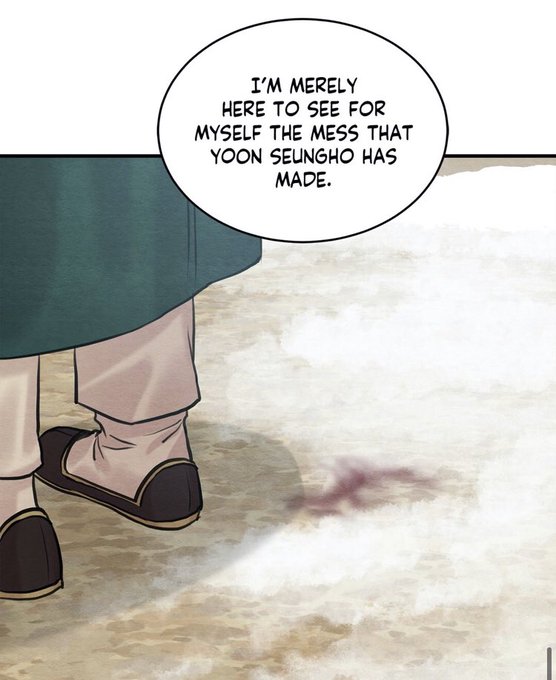 ‘i’m merely here to see for myself the mess that yoon seungho has made.’ after rubbing his blood covered shoe on the snow.