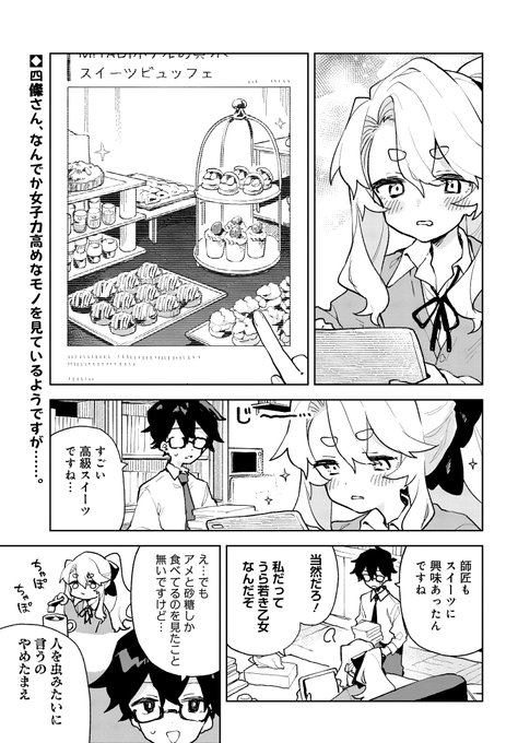 取材でスイーツ巡りをする2人。烏丸くんは意外にもスイーツ事情に詳しいようです。