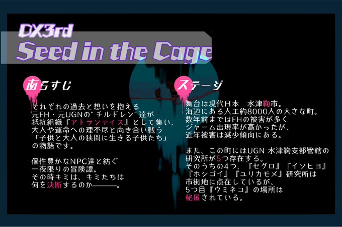 拙作DX3シナリオ『Seed in the Cage』を抽選で3名様にプレゼントします🎁