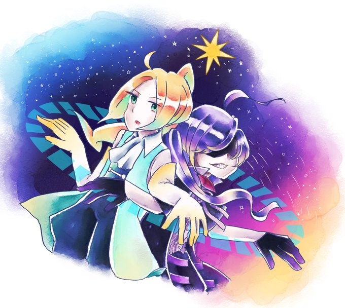 うみのなかで。 *°しらたまさん(@shiratamrmr )とこのブリジットちゃんとうちのペルーラのクロスオーバーです 感謝🙏 #イラスト #創作 #女の子