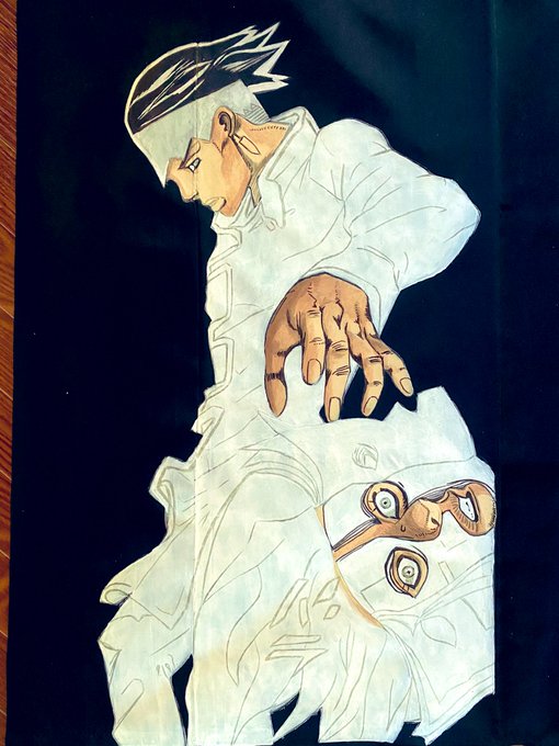 殺生丸、完成! 参考にした画像と共に。 #殺生丸 #桔梗 #奈落 #神楽 #アクリル絵具 #手描き着物