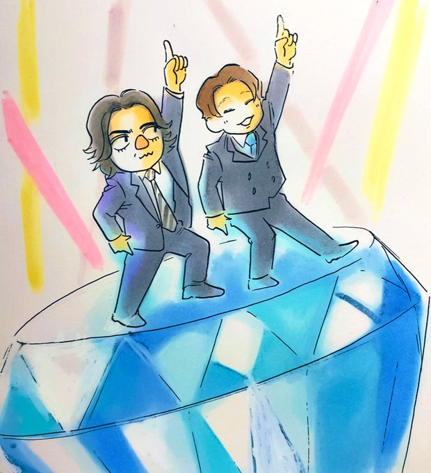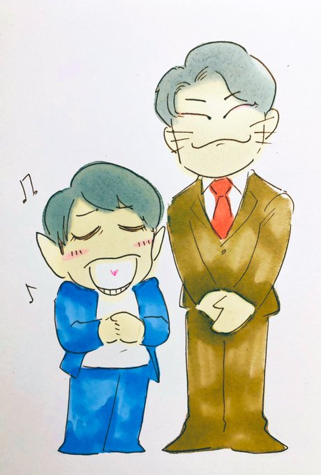 『一気に偉くなったで!』 スーツの比率を全く理解してなくてここにはこれ、ここにはあれとやってたら眠くなったので塩様に登場してもらって練習しました。ついでに色塗りました。 色は蛇足でした。キラキラはもっといらなかったです。